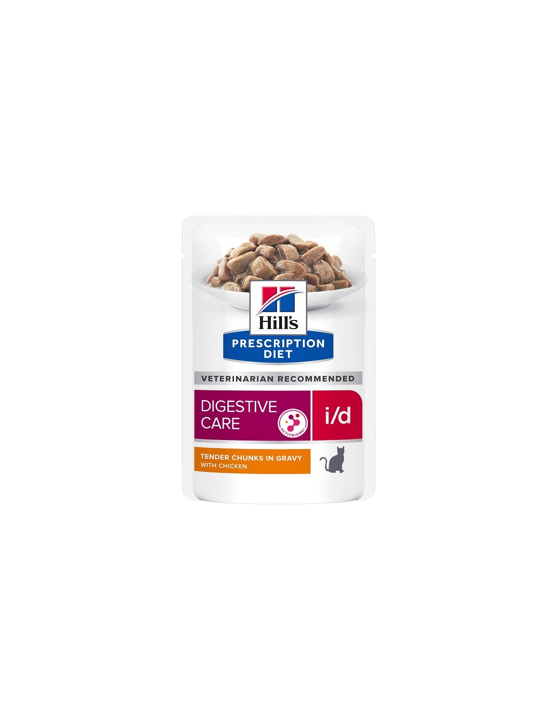 Hill's Prescription Diet i/d Hrană pentru Pisici cu Pui este o hrană completă pentru animale de companie, uşor de digerat, pentru reducerea tulburărilor de absorbţie intestinală şi pentru compensarea maldigestiei şi insuficienţei pancreatice exocrine la pisici. Această hrană conține un nivel crescut de sodiu şi potasiu şi ingrediente foarte digerabile.