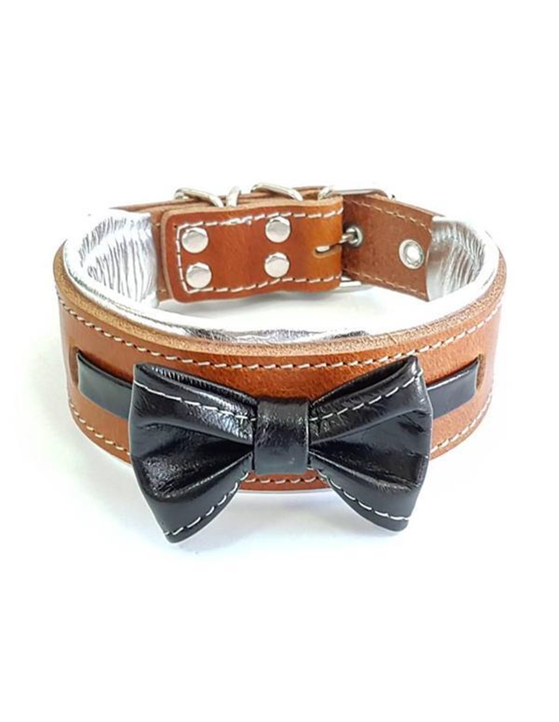 Zgarda Bowtie-Papion, Piele Naturala, Maro/Negru, pentru St Bernard, Husky, Bulldog etc