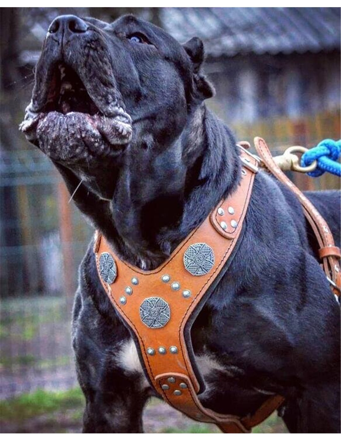 Hamul pentru caini mari „Maximus” Silver din piele naturala - eleganta, unica si cu design atragator.
