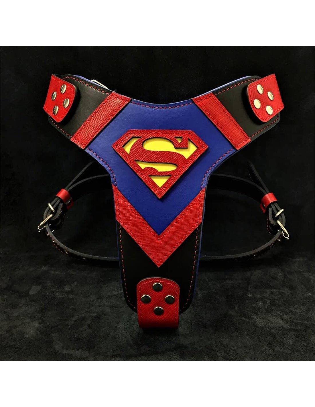 Prezinta-te cu super cainele tau purtand un ham de design Superman.