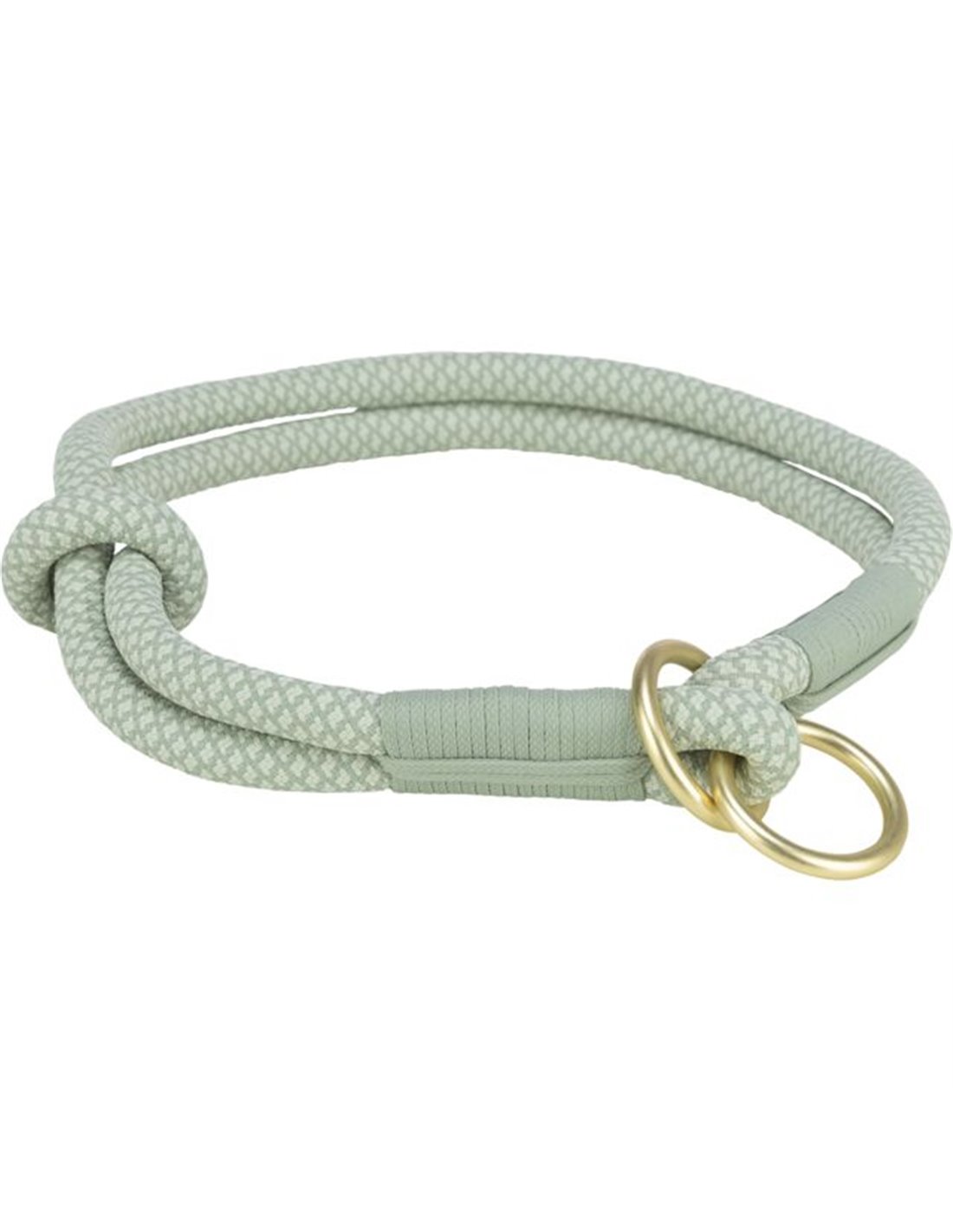 Zgarda semistrangulanta confectionata din franghie mata, tesuta rotund. Zgarda semistrangulanta ajuta la reducerea tragerii cainelui in timpul mersului. Daca cainele trage mai tare de lesa, zgarda se va strange pana la punctul de oprire stabilit. Cand cainele se opreste din trasul lesei, zgarda se largeste din nou si devine confortabila pentru caini. Punctul de oprire sau nodul zgarzii este reglabil: inainte de utilizare, punctul trebuie setat astfel incat animalul de companie sa nu poata aluneca din zgarda si sa nu fie niciodata prea strans cand este tras. Cu inel pentru lesa.