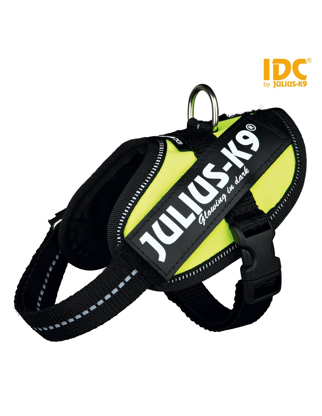 - Cu stickere fluorescente si fosforescente pe ambele parti: Logoul luminos „Julius-K9®“ poate fi inlocuit cu alte stickere personalizate cu benzi Velcro