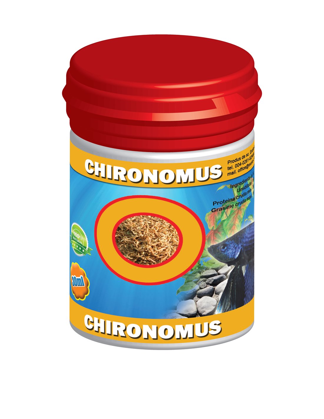 EXO Chironomus este o hrana naturala ce ofera vitalitate pestilor exotici. Prin procesul de liofilizare, valoarea nutritiva a larvei vii se pastreaza integral.