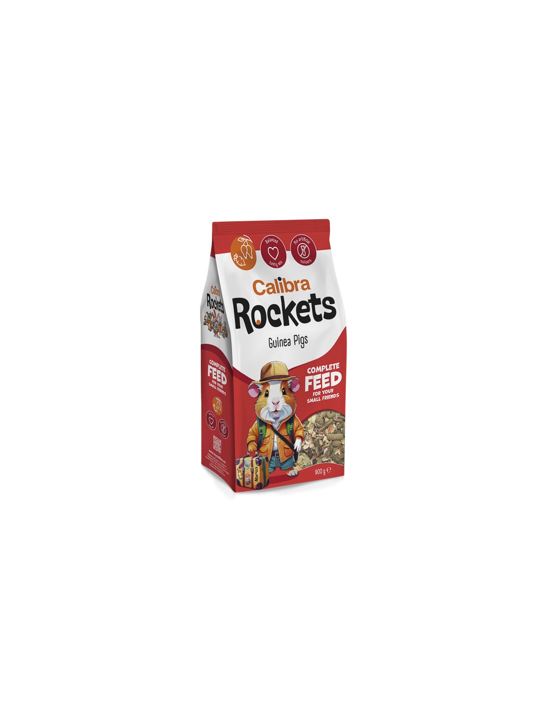 Ingrediente: lucernă, fulgi de mazăre, fân, roșcove, grâu, porumb, fulgi de grâu, fulgi de porumb, fulgi de orz, măceșe uscate 2.6 %, semințe de floarea-soarelui decojite, mazăre, orz, morcovi uscați, tulpină de lucernă, pomadă de mere, minerale, sfeclă roșie uscată 1.1 %.