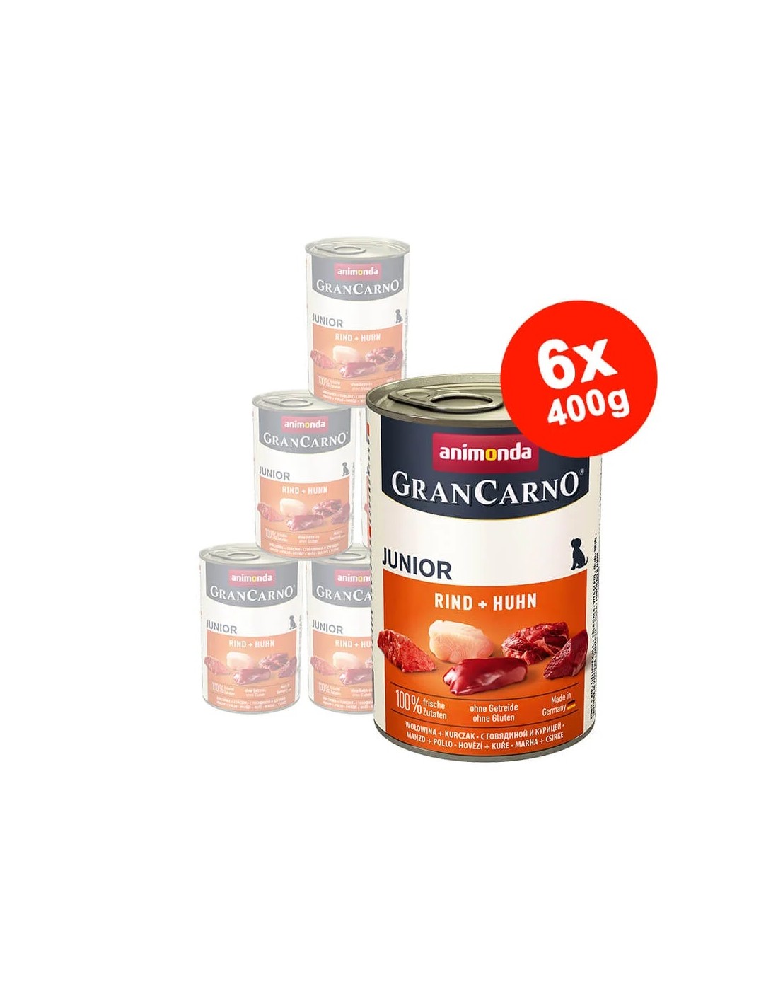 GranCarno Junior reprezintă nutriția delicioasă, sănătoasă și echilibrată la cel mai înalt nivel pentru puii în creștere în primul an. Ingredientele proaspete și cărnoase selectate garantează gustul incomparabil pe care câinii îl apreciază atât de mult. GranCarno Junior – cu bucățile sale cărnoase mai mici, potrivite pentru pui – este adaptat în special nevoilor nutriționale ale puiilor în creștere.