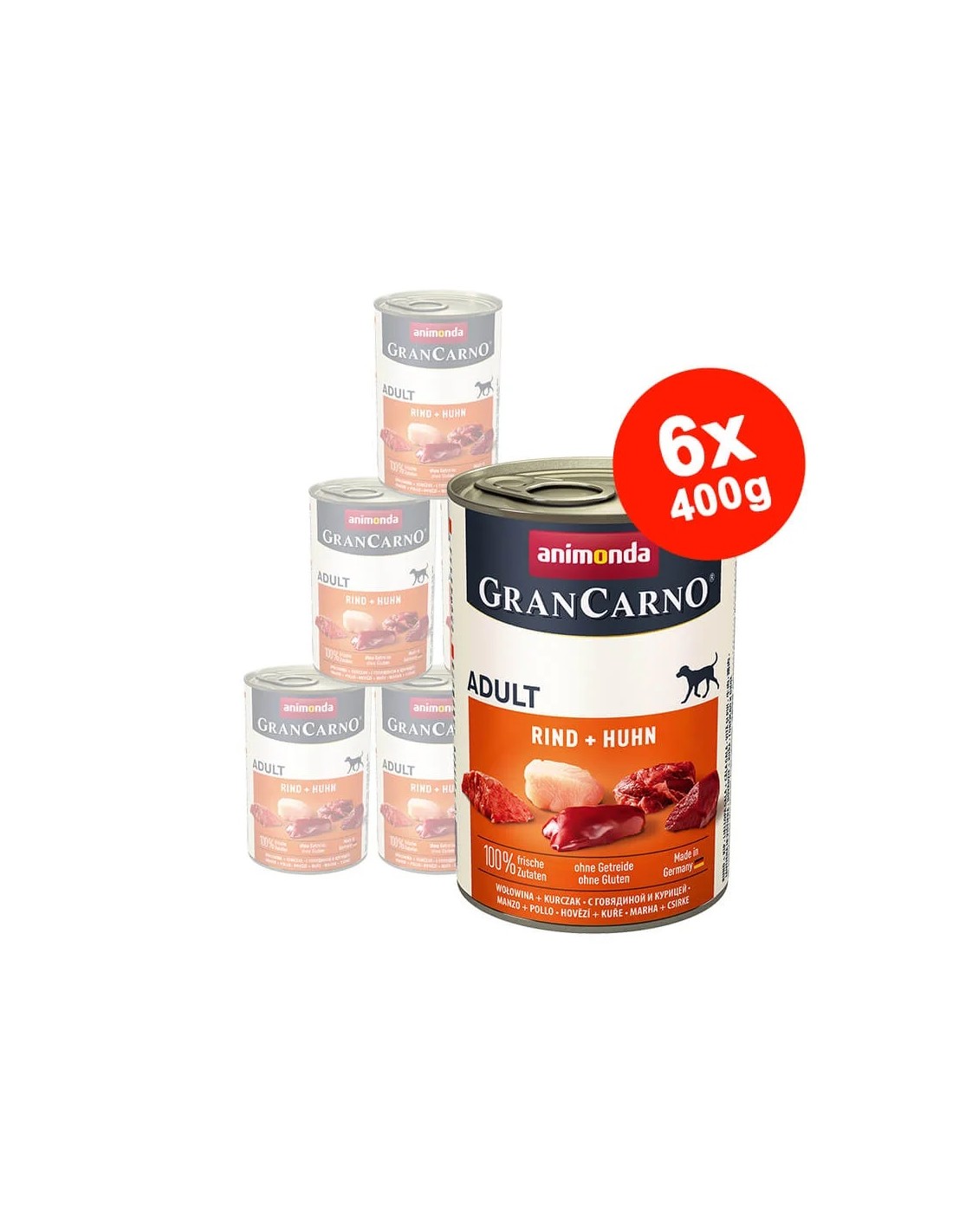 Hrana umeda pentru caini GranCarno Adult, Vita si Pui, 6×400 gr