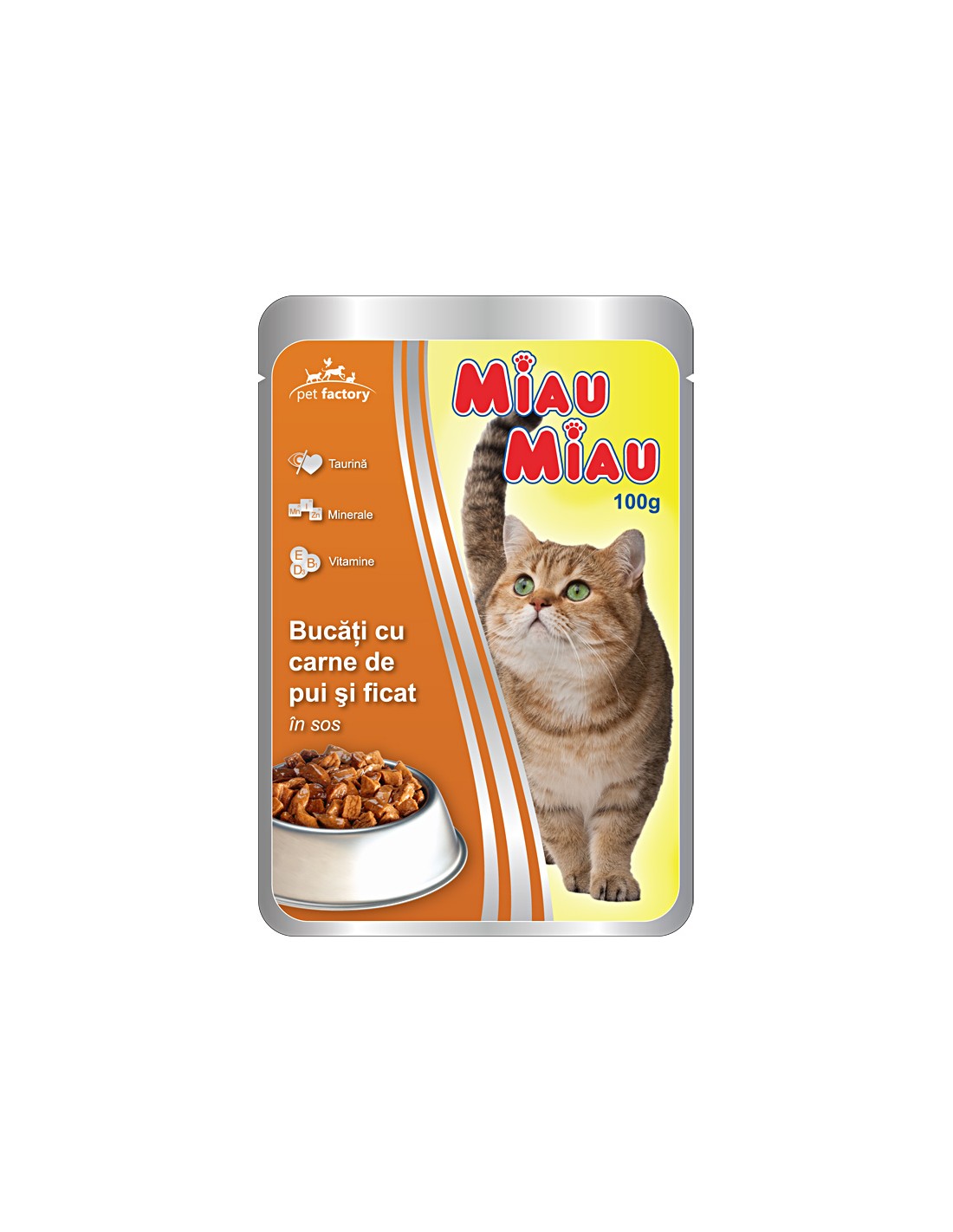 Plic Miau Miau cu Carne de Pui si Ficat in Sos, 100 g