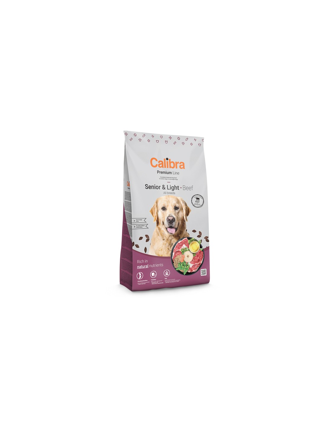 Compoziție: proteină din carne de vită 32 %, porumb, ovăz 20 %, pulpă uscată de mere 4 %, lignoceluloză 2 %, grăsime de pasăre 2 %, drojdie de bere, drojdie hidrolizată 2 %, ulei de somon 1 %, morcovi 1 %, mazăre 1 %, pătrunjel uscat 0,5 %, alge kelp uscate 0,2 % (Ascophyllum nodosum), glucozamină (260 mg/kg), sulfat de condroitină (160 mg/kg), manan-oligozaharide (150 mg/kg), fructo-oligozaharide (80 mg/kg), yucca Mojave (80 mg/kg), β-glucani (40 mg/kg).