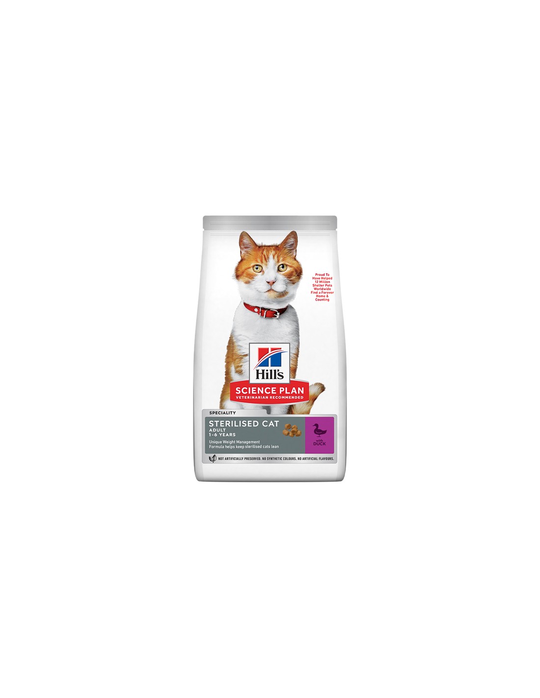 Hill's Science Plan Sterilised Cat Adult Hrană pentru pisici, cu rață, este o hrană completă pentru pisicile sterilizate cu vârsta de la 1 la 6 ani.