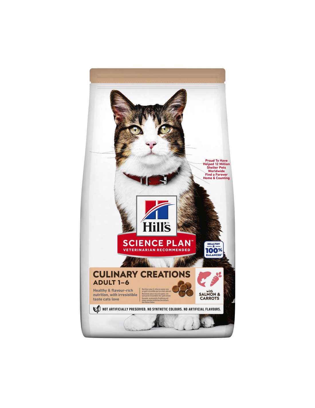 Hrana pentru pisici adulte Hill's Science Plan cu somon şi morcovi a fost formulată pentru a le oferi pisicilor o experienţă cu un gust deosebit. Textura și gustul său delicios se combină cu nutrienţi esenţiali pentru a susţine sănătatea optimă a pisicilor în perioada de vârf a vieţii. Formulată special cu proteine de somon de înaltă calitate, taurină esenţială pentru sănătatea inimii şi minerale echilibrate pentru a susţine rinichii şi vezica urinară.