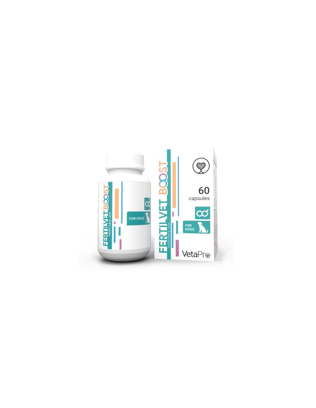 Supliment nutrițional menit să ajute câinii masculi adulți să crească numărul și motilitatea spermatozoizilor și fertilitatea generală. Amestec de substanțe naturale care cresc libidoul și îmbunătățesc fertilitatea (colții babei, maca neagră), cresc motilitatea spermatozoizilor (L-carnitină), îmbunătățesc calitatea spermei și nivelul hormonilor de reproducere (acizi grași Omega-3), cu zinc (mineral esențial pentru dezvoltarea spermatozoizilor), acid folic (ajută la formarea ADN-ului în spermatozoizi), seleniu și vitamina E (reduce deteriorarea radicalilor liberi și îmbunătățește motilitatea spermatozoizilor).