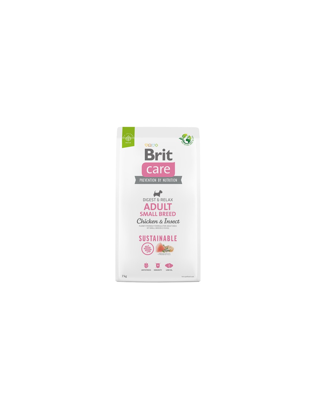 Hrană superpremium, sustenabilă și ecologică pentru o digestie sănătoasă, reducerea stresului, îmbunătățirea condiției fizice și susținerea imunității. Ideal pentru câini adulți din rase mici. Conține proteine ușor digerabile și valoroase din punct de vedere nutrițional, cu aminoacizi complecși, pentru un tonus muscular excelent și țesuturi sănătoase. Formula fără gluten este potrivită pentru toți câinii, fără risc de creștere în greutate. O hrană bazată pe proteine și ingrediente sustenabile, cu un impact cu 35% mai mic asupra mediului.