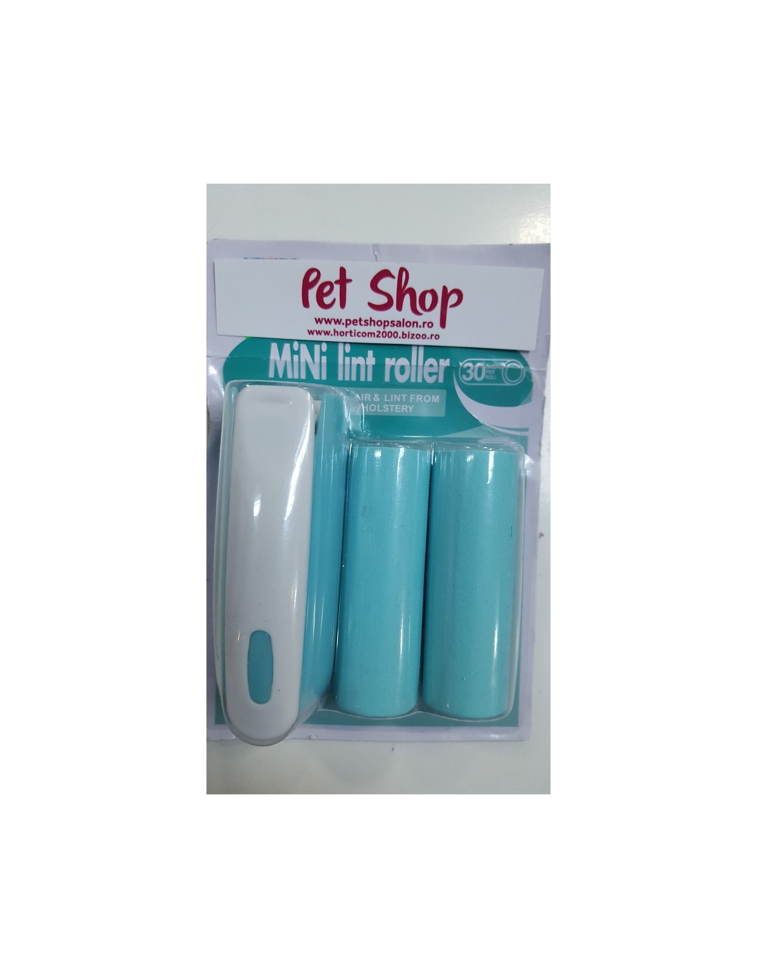 Mini Roller de culoare albastra, cu doua rezerve, pentru curatatul scamelor sau al parului de pe haine.