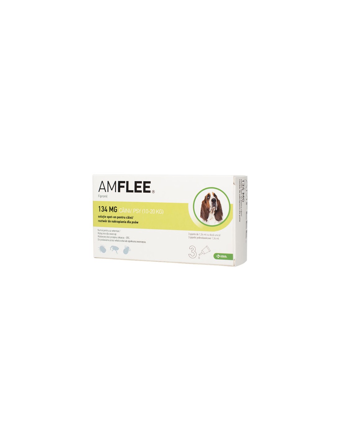Amflee Spot On Caini, 10-20 kg, este un produs antiparazitar de uz extern ce contine fipronil si este indicat in tratamentul si prevenirea infestatiilor cu purici (Ctenocephalides spp) capuse (Rhipicephalus spp Dermacentor spp Ixodes spp) si a infestatiilor cu paduchi malofagi Trichodectes canis la caini. Amflee Spot-on are o eficacitate insecticida persistenta de pana la 2 luni impotriva puricilor si o eficacitate acaricida de pana la 4 saptamani impotriva capuselor. Amflee Spot-On poate fi utilizat ca parte a strategiei de tratament pentru dermatita alergica cauzata de intepaturile puricilor (FAD) in cazul in care aceasta a fost diagnosticata anterior de catre medicul veterinar.