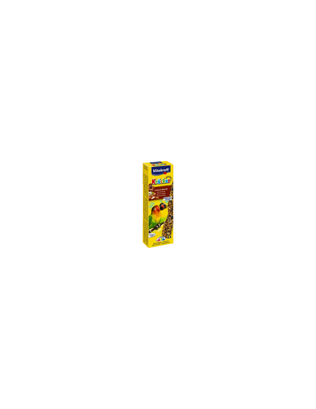 Batoane sanatoase si delicioase pentru papagalii Agapornis, cu un gust rafinat de migdale si curmale. Acopera necesitatile acestora de vitamine.