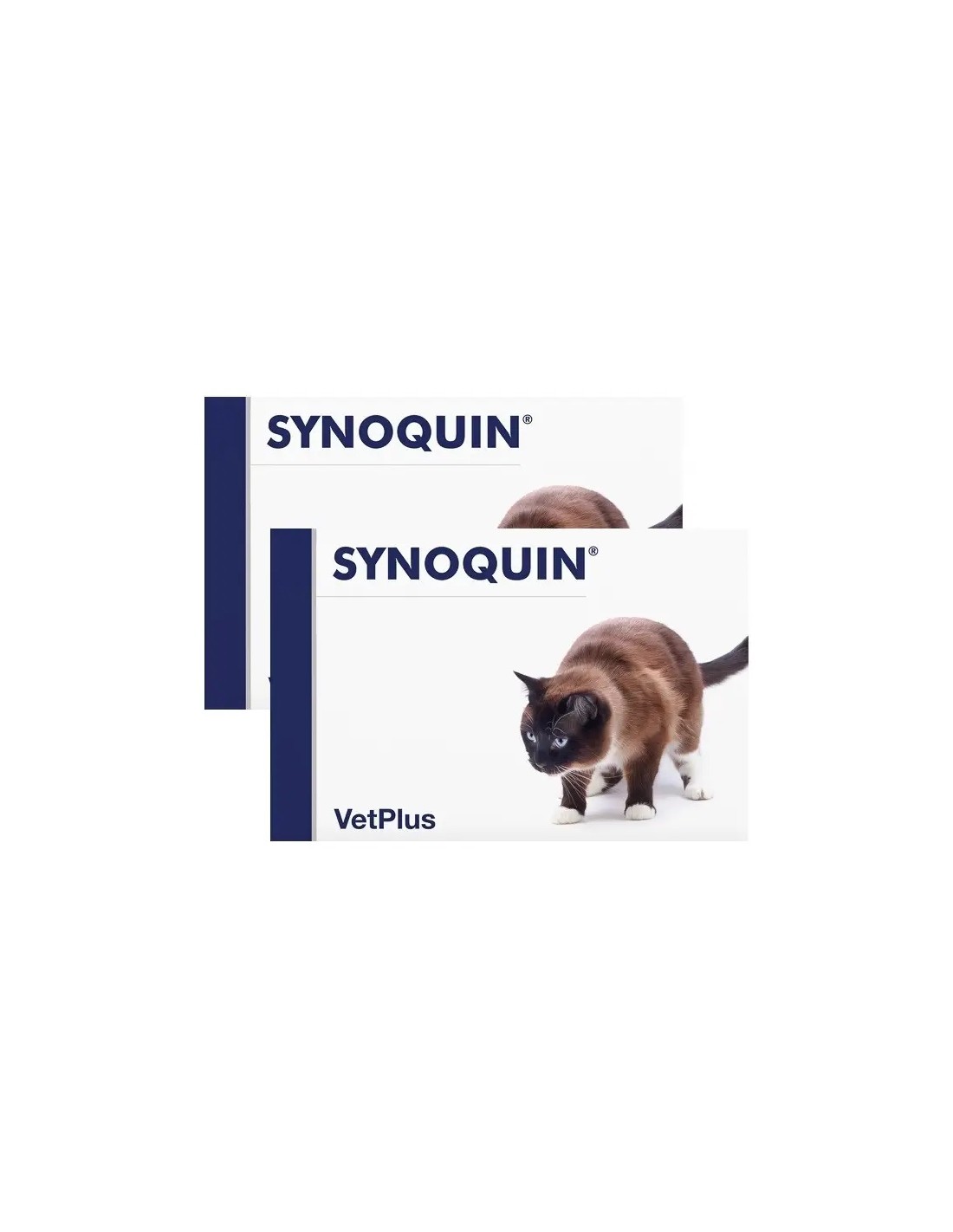Synoquin Cat este un nutraceutic recomandat pisicilor ce suferă de afecțiuni osteo-articulare ce apar odată cu înaintarea în vârstă sau dobândite în urma traumatismelor. Conține 5 ingrediente active: glucozamină clorhidrat, sulfat de condroitină, dexahan, acid ascorbic și zinc, ce acționează sinergic: anti-inflamator, analgezic, anabolic, anti-catabolic și anti-oxidant.
